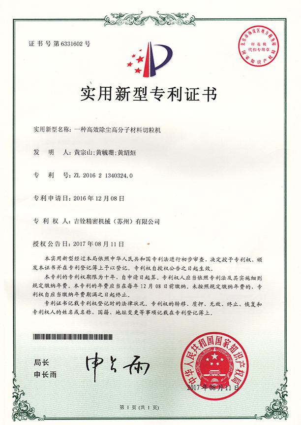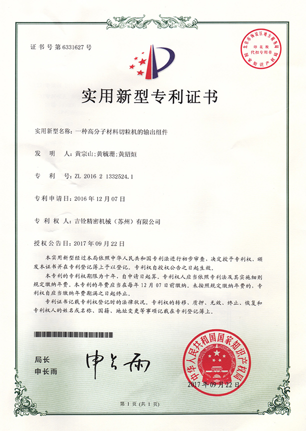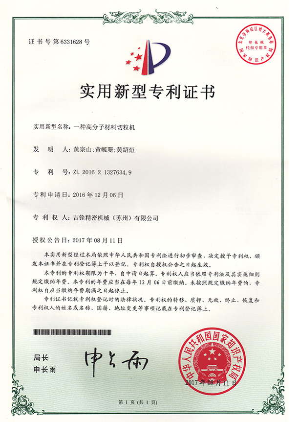 吉銓精密機(jī)械(蘇州)有限公司始創(chuàng)于臺(tái)灣臺(tái)北,是富有五十年歷史的外商獨(dú)資企業(yè)。于1999年在江蘇蘇州投資設(shè)廠,公司專業(yè)制造、經(jīng)營水下拉條切粒機(jī)系統(tǒng)設(shè)備;公司產(chǎn)品廣泛應(yīng)用于石油化工行業(yè),PCT、PETG、PCTG、LCP等,工程塑料SAN、ABS、GPPS、HIPS、PMMA、MS、ASA等,錦綸PA6、PA66、PA56、PA610、PA612、高溫尼龍等、聚碳PC等行業(yè),是一家專業(yè)造粒設(shè)備生產(chǎn)設(shè)計(jì)制造商。